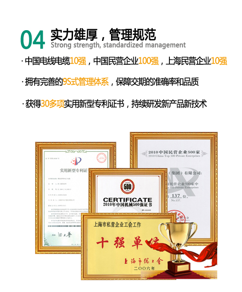 ISO管理体系,公司获CNAS认证、CCC认证,并获欧盟CE,KEMA,TUV,CCS证书,高标准质量。